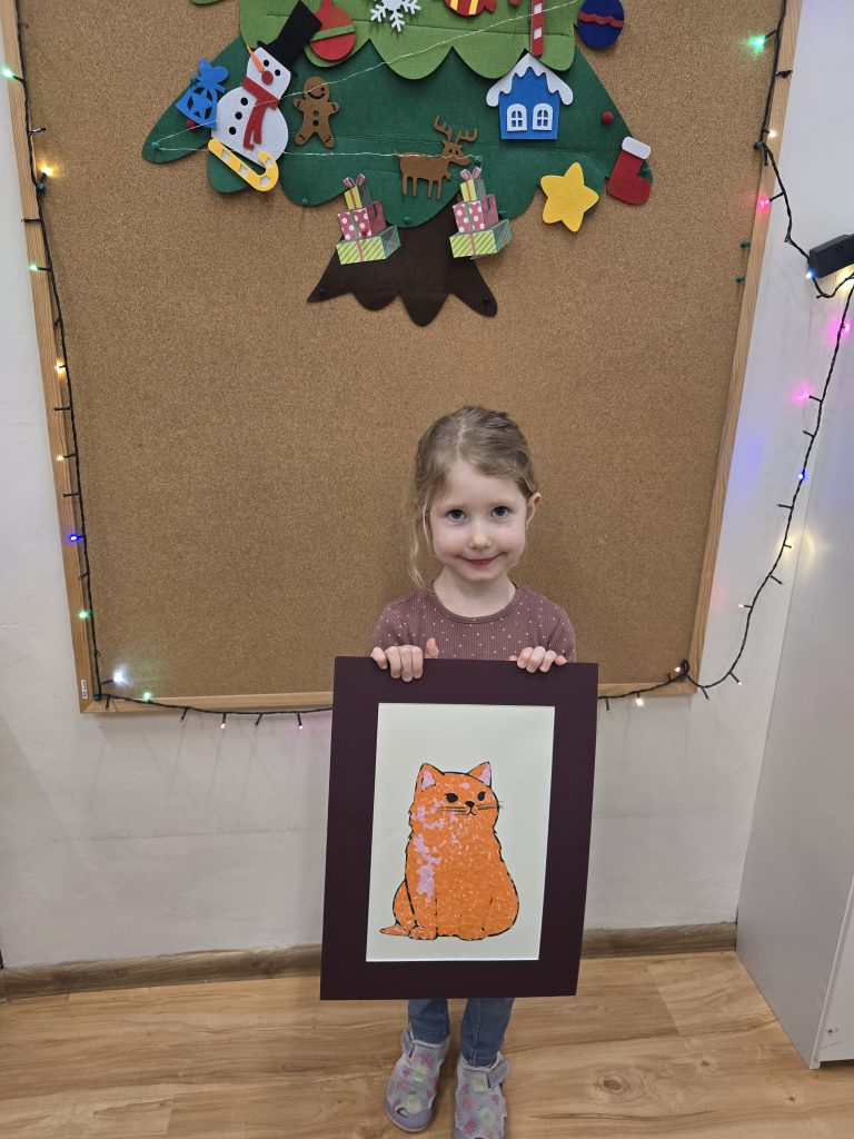 Nina z piękną pracą na konkurs pt. "Zimowe zabawy", Helenka z uroczą pracą na konkurs pt. "Fantazyjne drzewko" oraz Ida z uroczą pracą na konkurs pt. "Kot przyjaciel człowieka". Trzymamy kciuki🥰