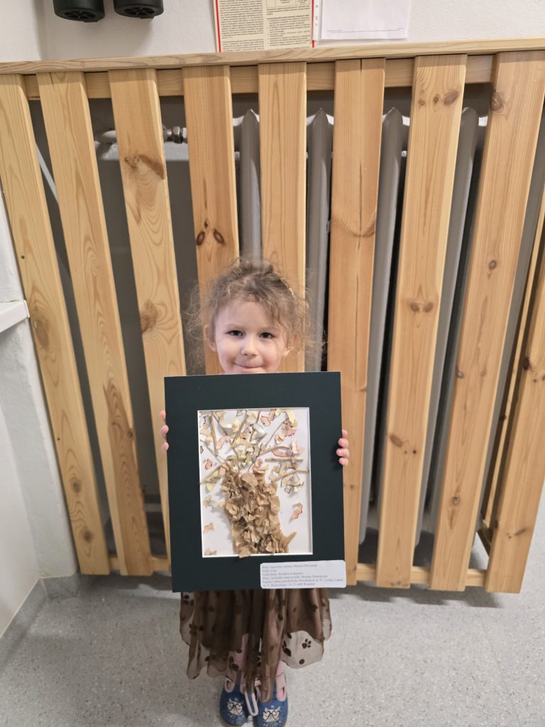 Mila - uczestniczka konkursu "Drzewa wokół nas" z dyplomem i upominkami