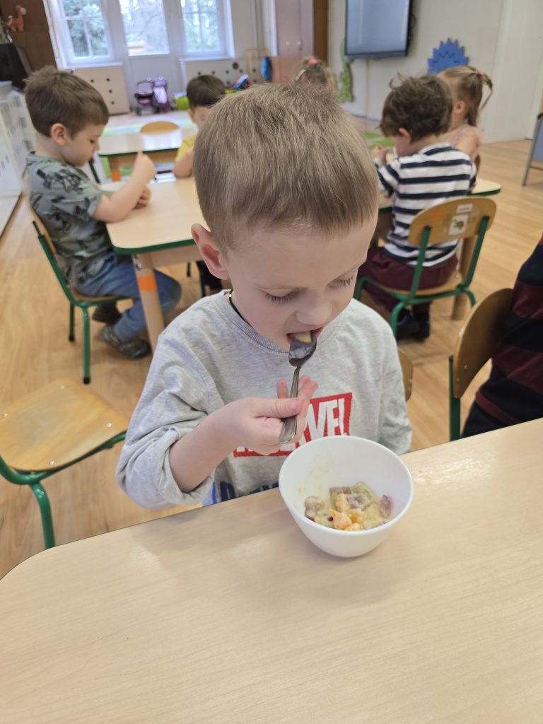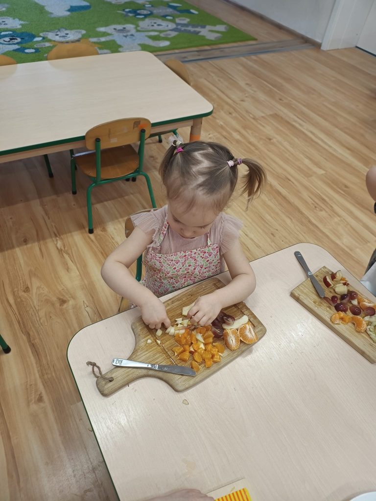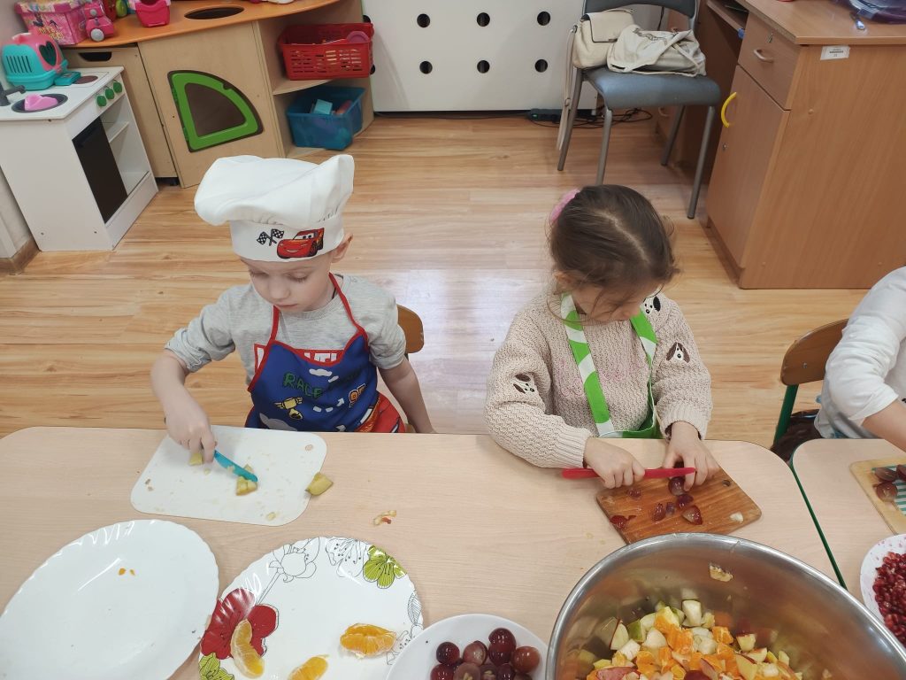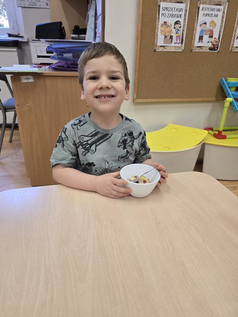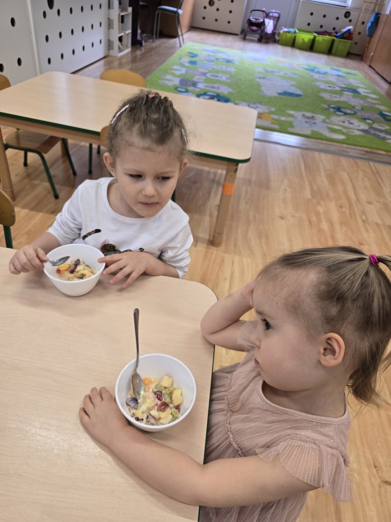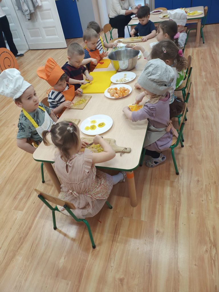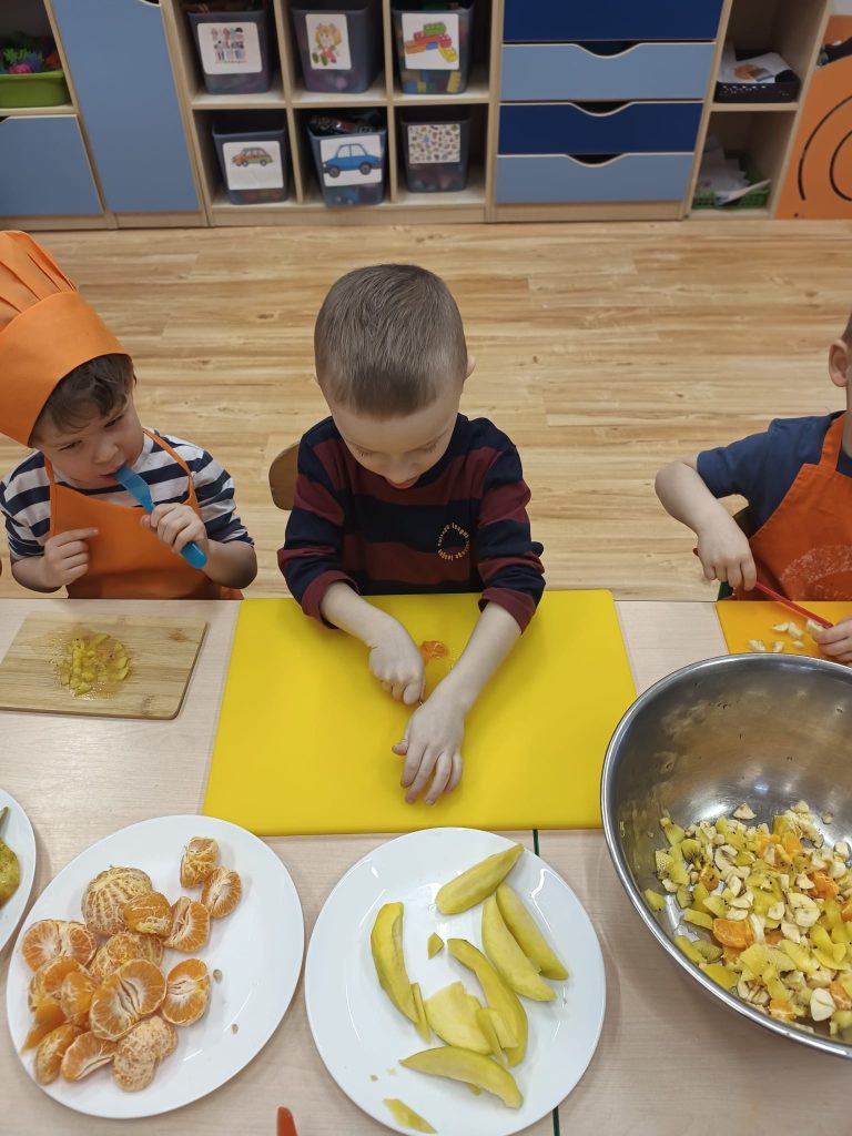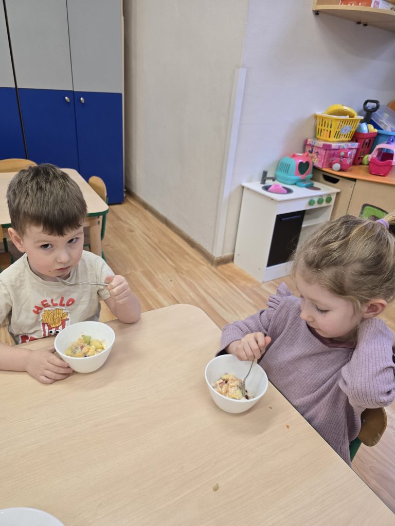 Sałatka owocowa wykonana przez dzieci w ramach cyklicznych warsztatów kulinarnych 🍌🍊🍇🍎🥝