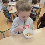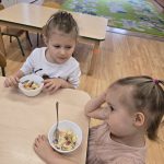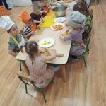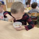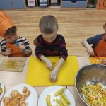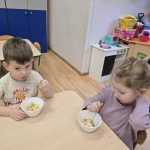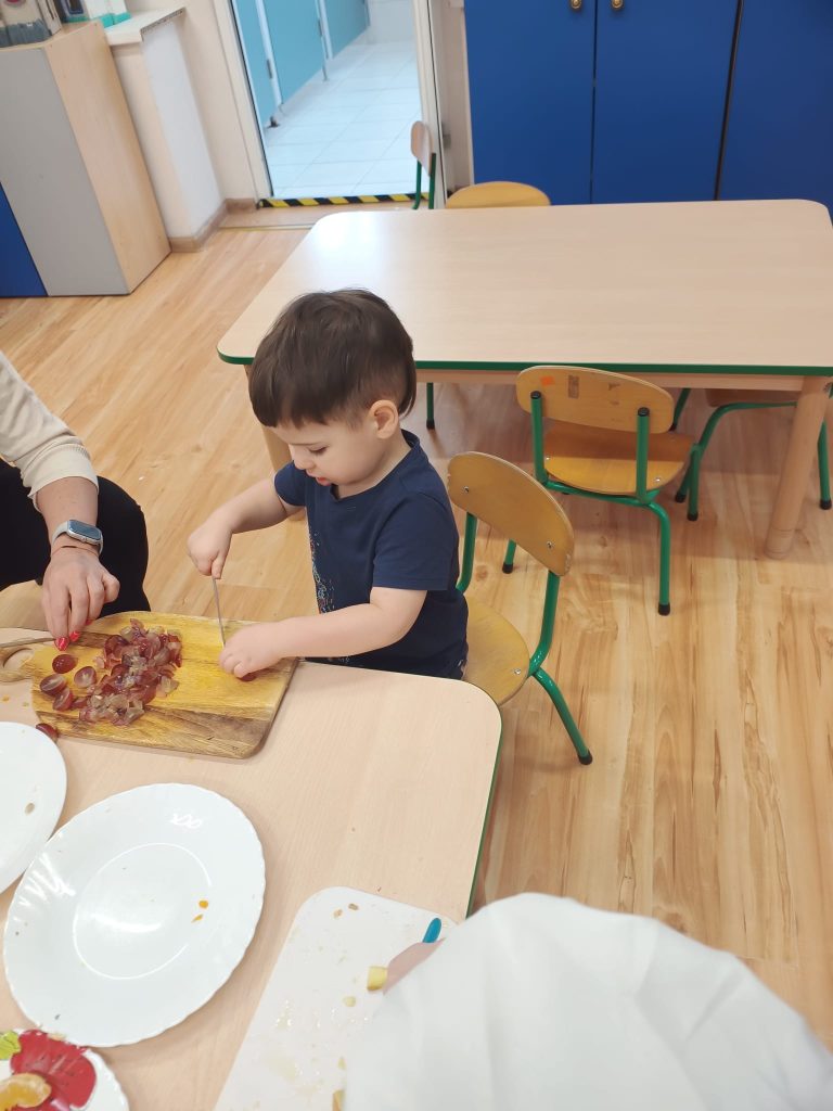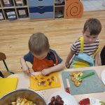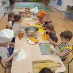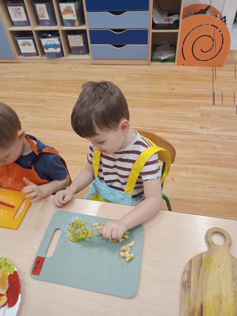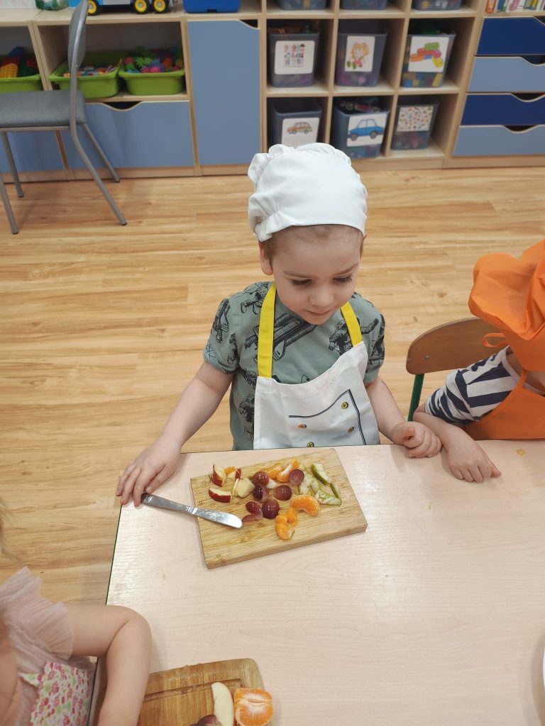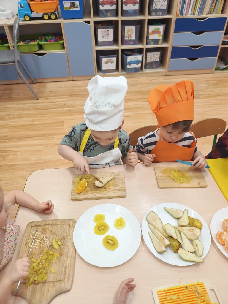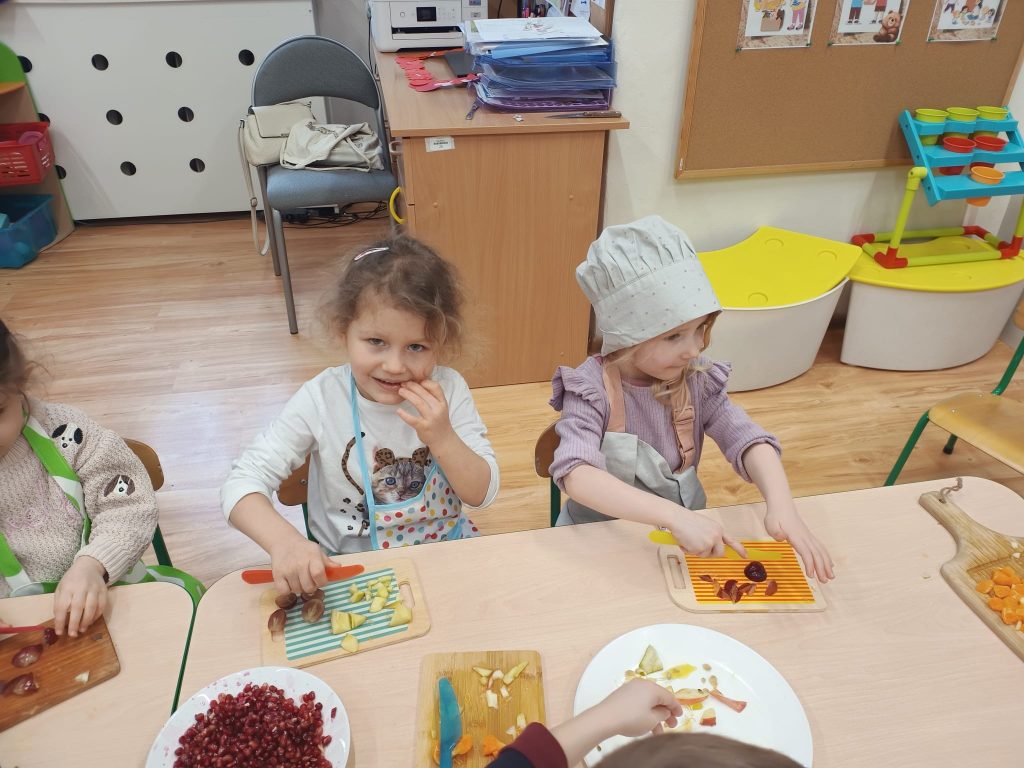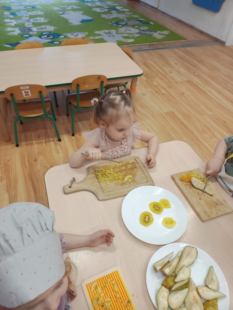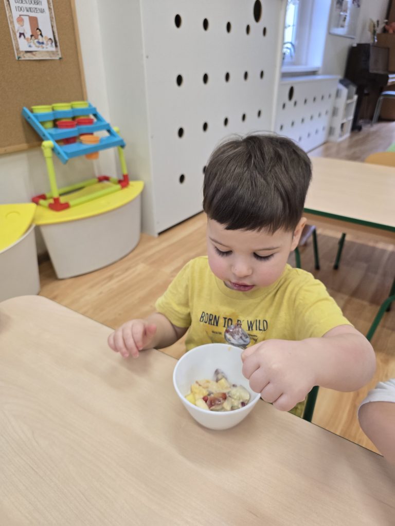 Sałatka owocowa wykonana przez dzieci w ramach cyklicznych warsztatów kulinarnych 🍌🍊🍇🍎🥝