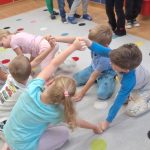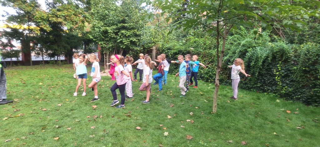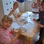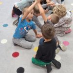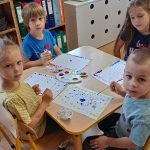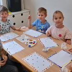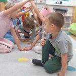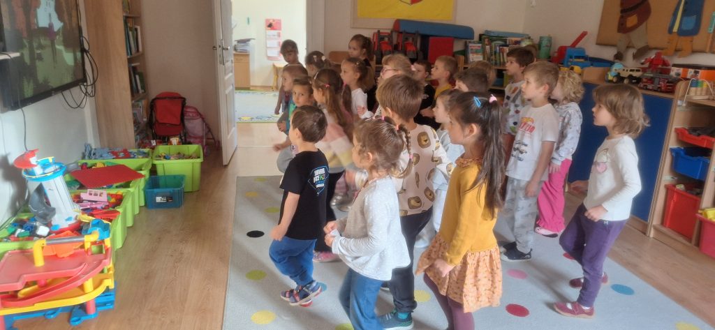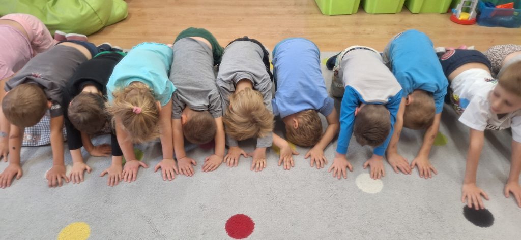 · „Dzień Kropki” – zabawy dydaktyczne, ruchowe i plastyczne · „Jestem dzielnym przedszkolakiem” – zabawy i ćwiczenia poranne – zestaw 3 · „Dzień pustej Sali” – zabawy ruchowe z trenerami szkółki piłkarskiej Olympic Wrocław. · „Piórko” – ćwiczenia oddechowe. · „Szeregi” – zabawa matematyczna · „Dokończ słowo”– zabawa słowna · „Wędrujący miś” – zabawa słuchowo-ruchowa · „Szukamy rymów” – zabawa dydaktyczna · „Rytm” – dostrzeganie regularności ułożonych przedmiotów. Dostrzeganie powtarzających się sekwencji i kontynuowanie ich · „Zdrobnienia” – zabawa słowna. · „Co schowano?” – zabawa dydaktyczna |