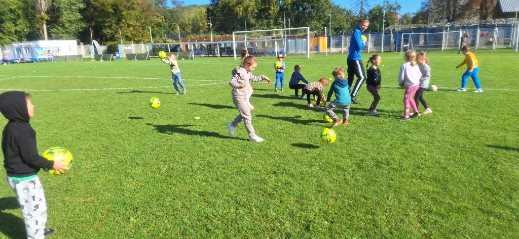 Oto kilka kadrów z naszych zabaw ruchowych pod kierunkiem niezawodnych trenerów szkółki piłkarskiej OLYMPIC. Zabawa na świeżym powietrzu i to na prawdziwym boisku to jest zdecydowanie to czego dzieci pragną. Tym razem pogoda dopisała i wykorzystaliśmy ją w 100 %