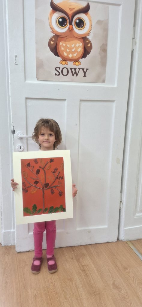 Nasza Marianna z pracą plastyczną na konkurs "Drzewa wokół nas".