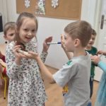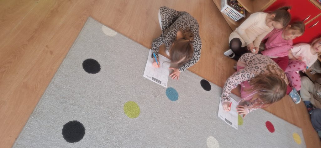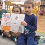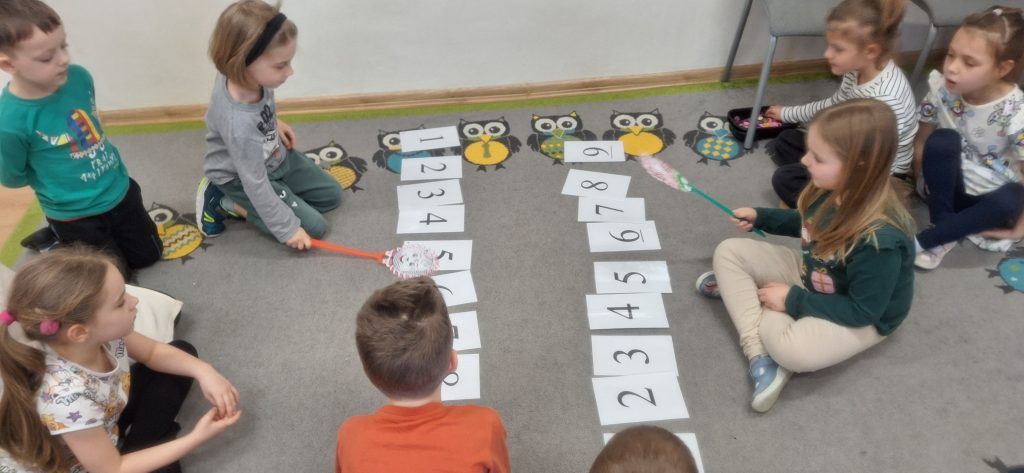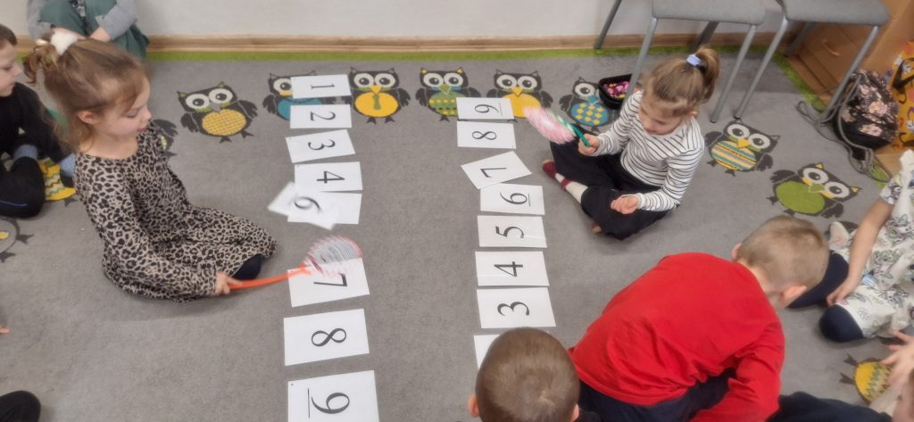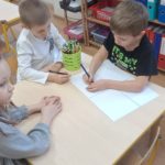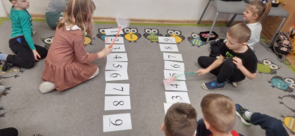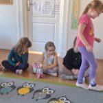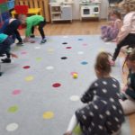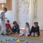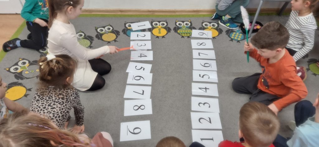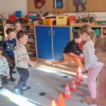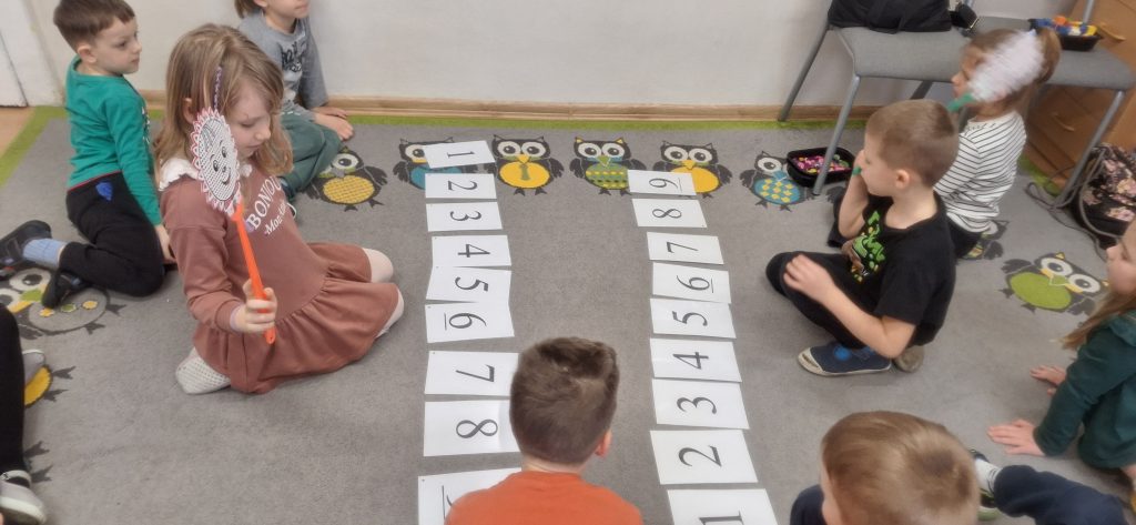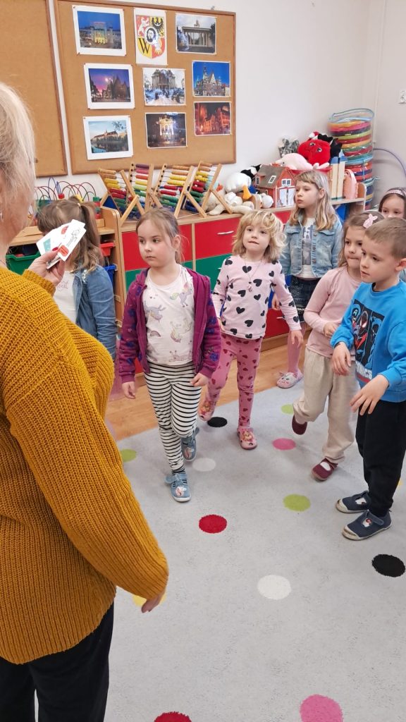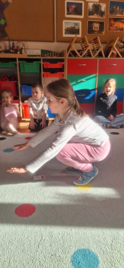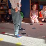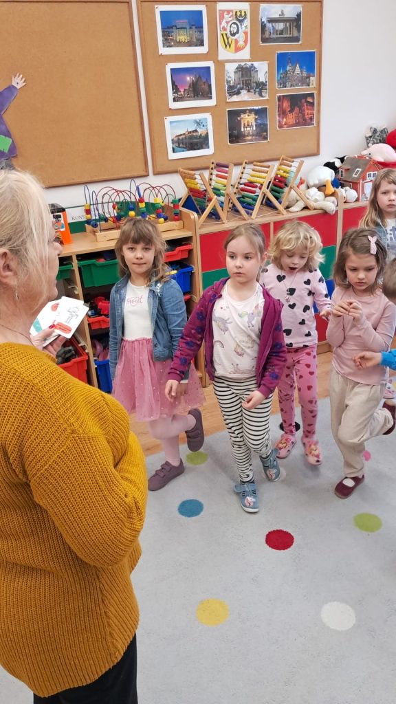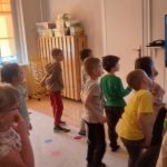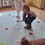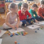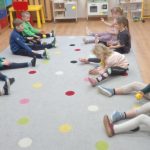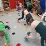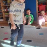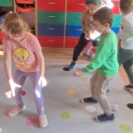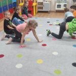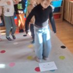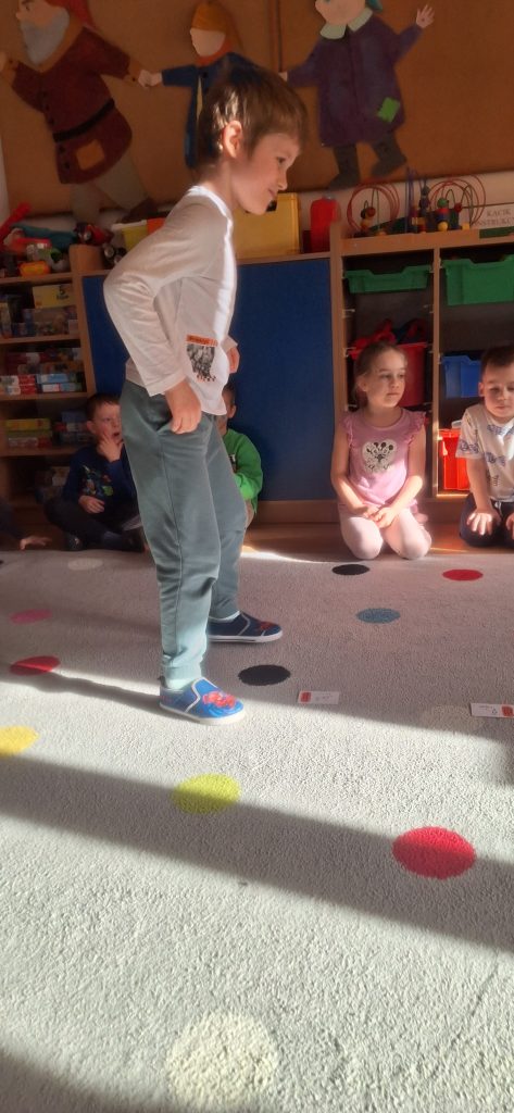 · „Dzień Kropki” – zabawy dydaktyczne, ruchowe i plastyczne · „Jestem dzielnym przedszkolakiem” – zabawy i ćwiczenia poranne – zestaw 3 · „Dzień pustej Sali” – zabawy ruchowe z trenerami szkółki piłkarskiej Olympic Wrocław. · „Piórko” – ćwiczenia oddechowe. · „Szeregi” – zabawa matematyczna · „Dokończ słowo”– zabawa słowna · „Wędrujący miś” – zabawa słuchowo-ruchowa · „Szukamy rymów” – zabawa dydaktyczna · „Rytm” – dostrzeganie regularności ułożonych przedmiotów. Dostrzeganie powtarzających się sekwencji i kontynuowanie ich · „Zdrobnienia” – zabawa słowna. · „Co schowano?” – zabawa dydaktyczna |