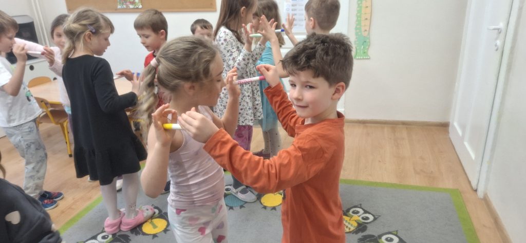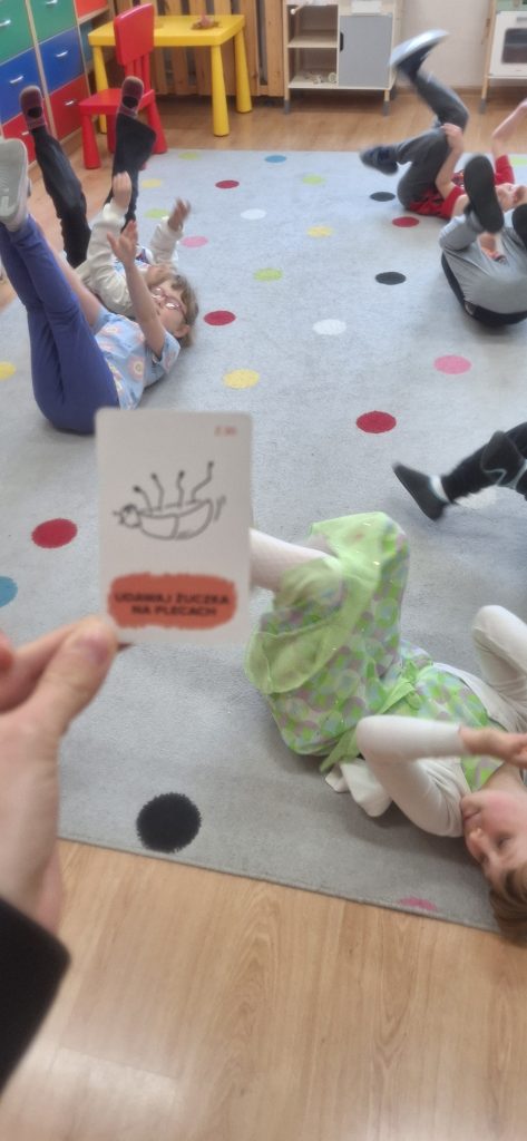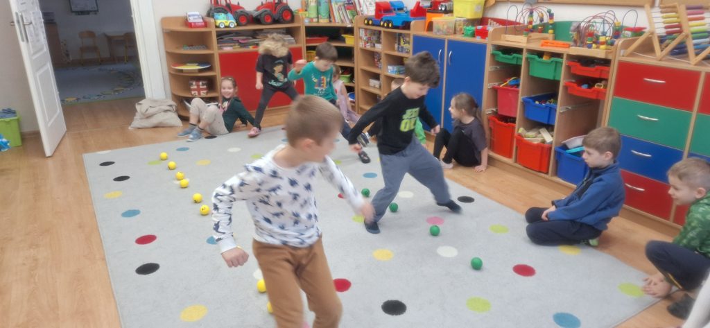 Edukacja w ruchu - Dzień Życzliwości, najpierw wyjaśniliśmy sobie czym jest życzliwość i powiedzieliśmy sobie kilka miłych słów, a później nastał czas na wesołe ruchowe zabawy 🙂