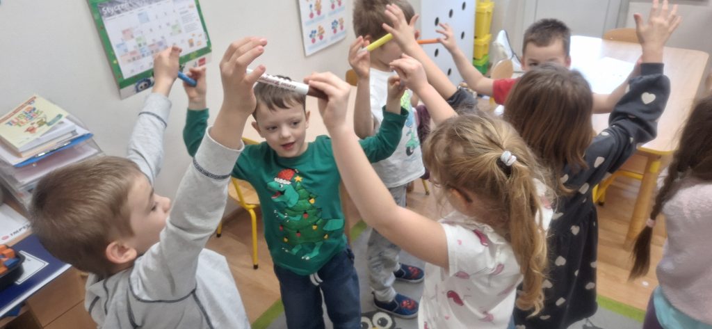 Święta zbliżają się wielkimi krokami, a my nie zwalniamy tempa! 🧑🎄 Projekt "Edukacja w ruchu" zachwycił nas całą garścią świątecznych zadań - pomagaliśmy Jeżowi wybrać prezenty dla jego miejskich przyjaciół 🎁🦔, a potem wspólnie ozdabialiśmy choinkę 🌲. Dzieci rysowały palcami wzorki w rytm świątecznych melodii, a każdy gest dodawał drzewku nowy błyszczący akcent! 🎄🤩 Prawdziwa świąteczna magia zagościła na dobre w naszej sali! #edukacjawruchu #edukacjawruchuWroclaw #PhysicallyActiveLearning @FundacjaV4Sport @Akademia Wychowania Fizycznego we Wrocławiu @AkademiaKrokietaiLamy @wroclaw.wroclove