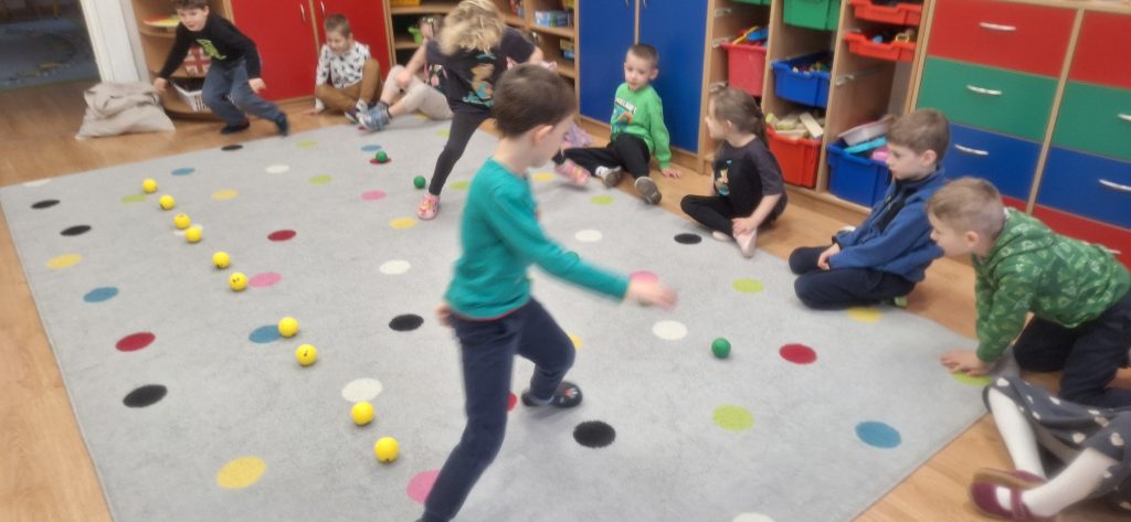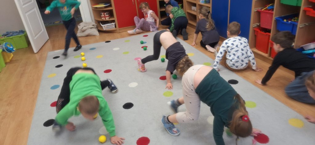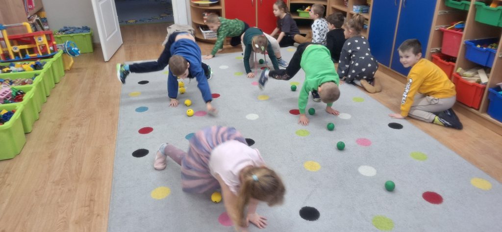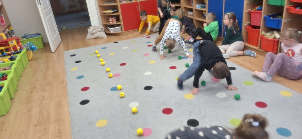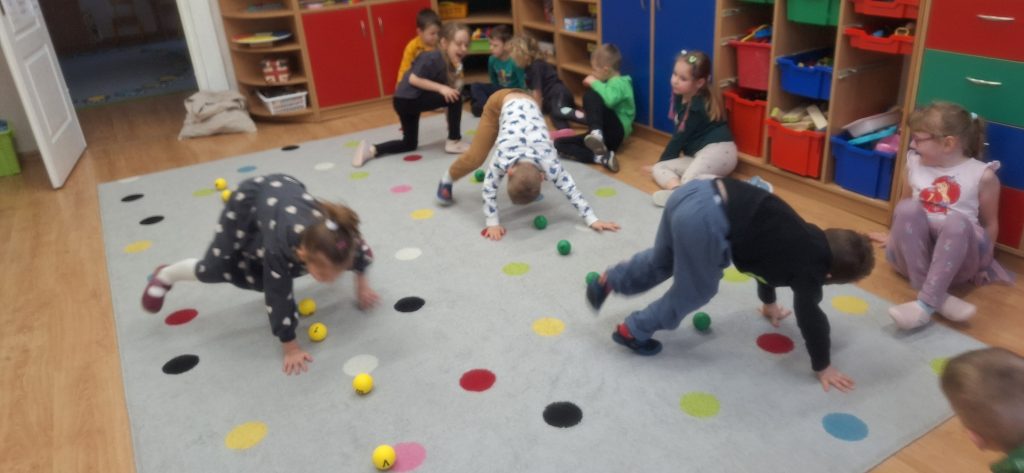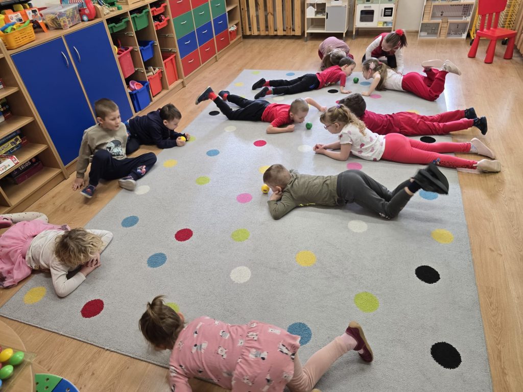 Edukacja w ruchu z użyciem piłek miniEDUball. Układamy rytmy, ćwiczymy mięśnie brzucha 🙂
