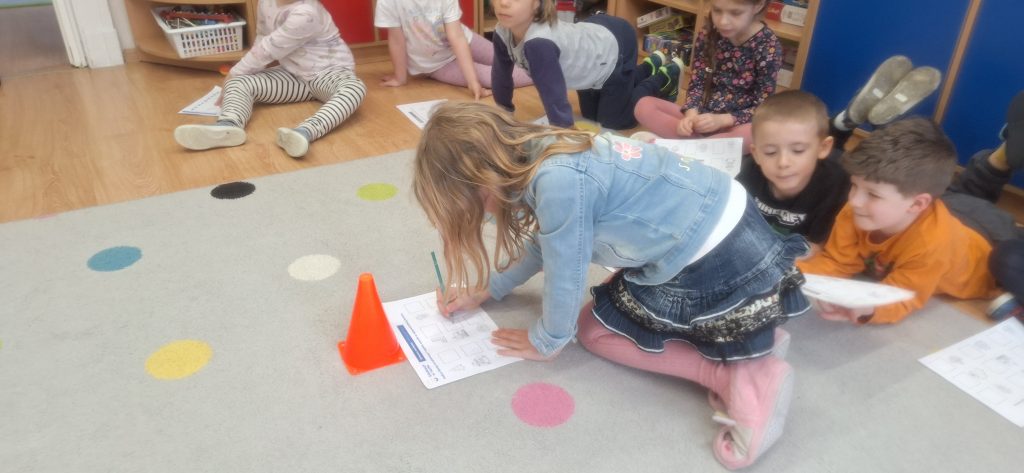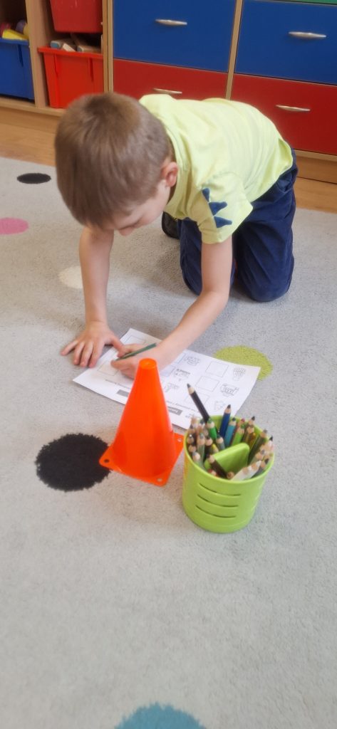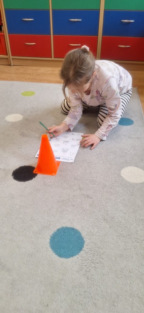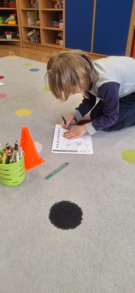 Edukacja w ruchu - utrwalanie zapisu graficznego poznanych liter, skaczemy, słuchamy i litery wybieramy 🙂