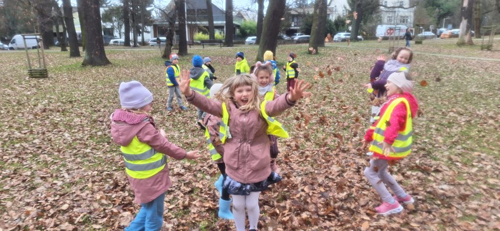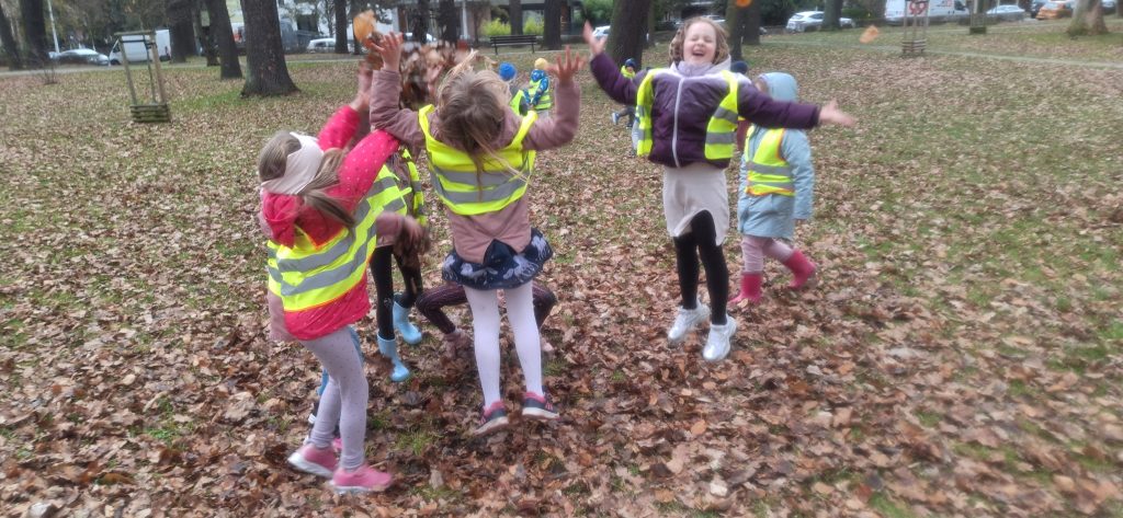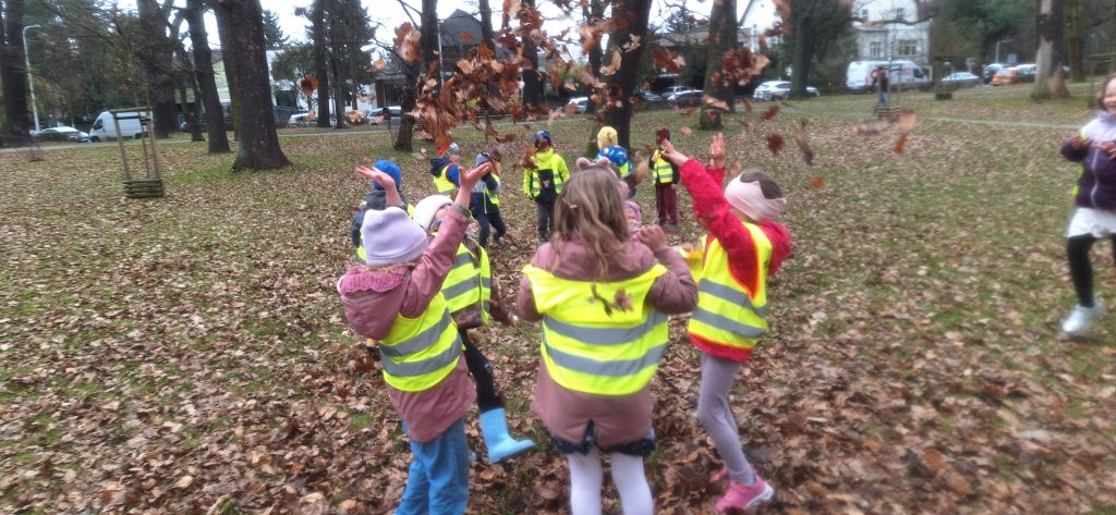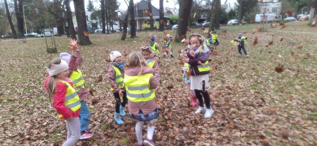 Jesienne zabawy w ogrodzie przedszkolnym.