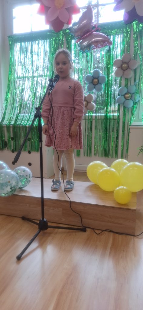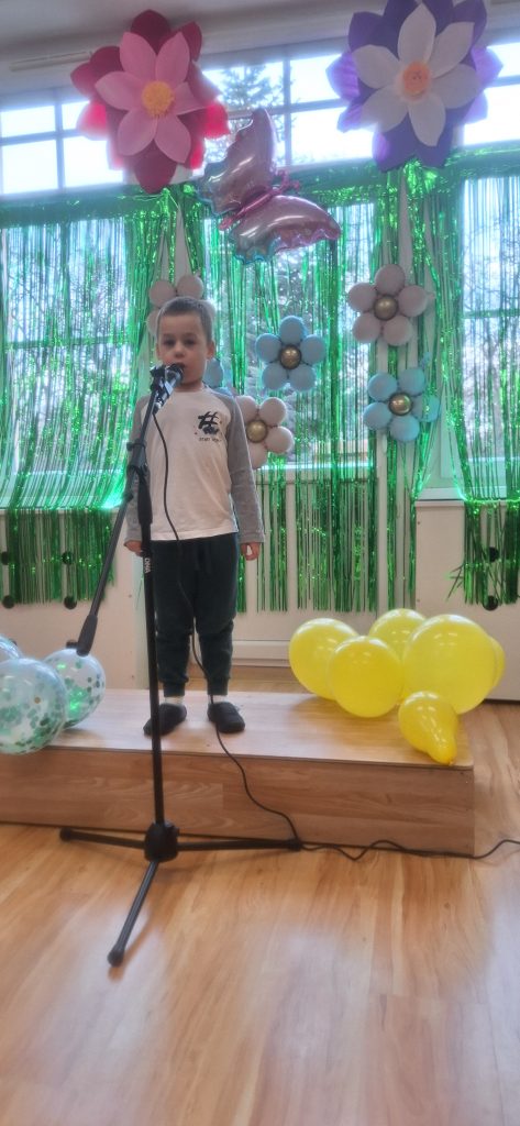 Powitanie wiosny - Konkurs recytatorski WIOSENNA POEZJA PRZEDSZKOLAKA. Gratulujemy Andrzejkowi, który zdobył jedną z głównych nagród oraz Liliance, która otrzymała wyróżnienie za autorską twórczość 🙂 Wszystkie dzieci spisały się na medal !